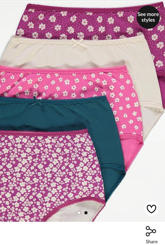 George Floral High Waisted Full Brief Knickers 5 Pack cotton